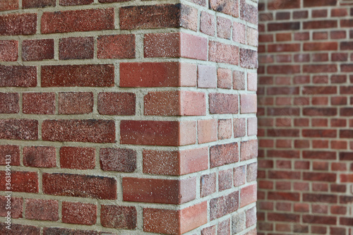 Ecke und Kante von roter Backstein und Ziegelstein Wand