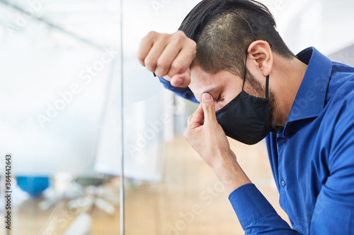 Business Mann mit Gesichtsmaske nach der Kündigung