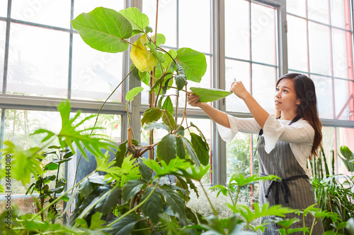 Floristin oder Gärtnerin kontrolliert Grünpflanzen