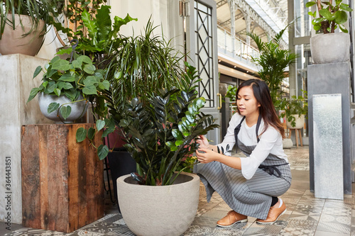 Floristin oder Gärtnerin trägt eine Grünpflanze