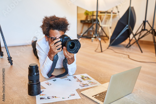 junger Fotograf als Fotostudent mit digitaler Kamera