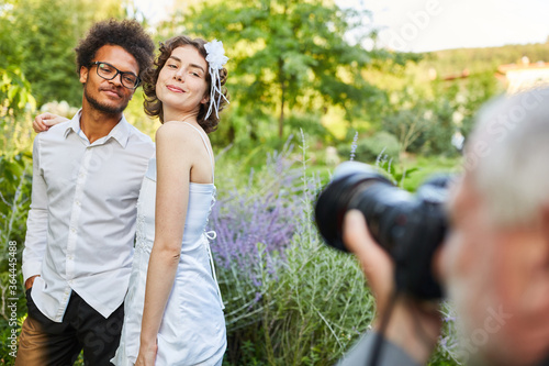 Hochzeitsfotograf fotografiert glückliches Brautpaar