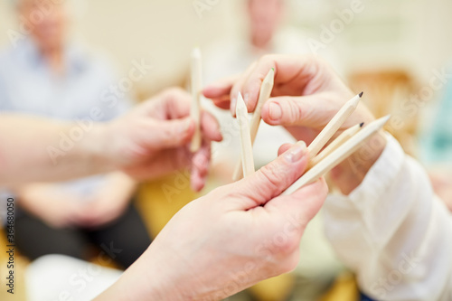 Senioren bei der Auswahl von Buntstiften in der Maltherapie im Seniorenheim