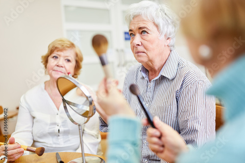 Seniorinnen bei Schminkkurs und Make-Up Beratung im Seniorenheim durch Make-Up Artist