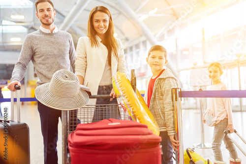 Familie mit Gepäck am Flughafen oder Bahnhof