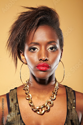 Portrait of a tattooed woman with icy blonde hair and confident expression