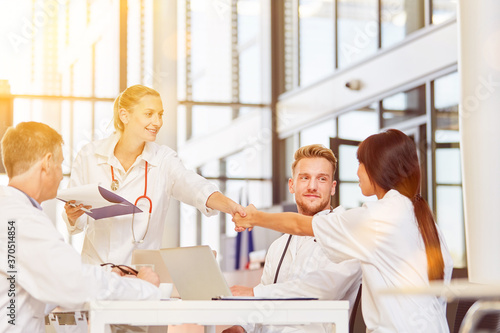 Ärzte geben Handschlag zur Begrüung bei Meeting