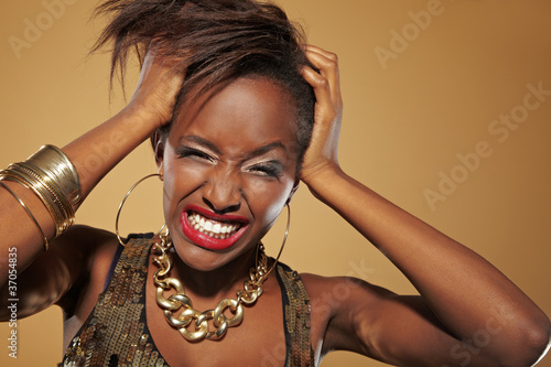 Frustrierte Afrikanerin rauft sich die Haare