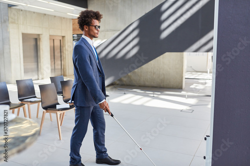 Blinder afrikanischer Geschäftsmann mit Blindenstock