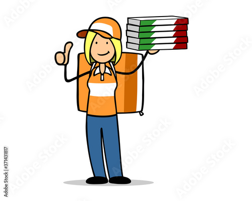 Lieferant von Pizza Lieferservice hält Daumen hoch