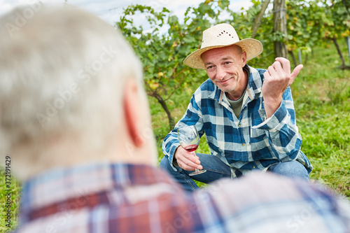 Zwei Winzer entspannen sich bei einem Rotwein