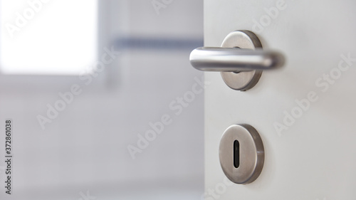 Offene Tür mit Türklinke und Schloss zum Badezimmer zu Hause