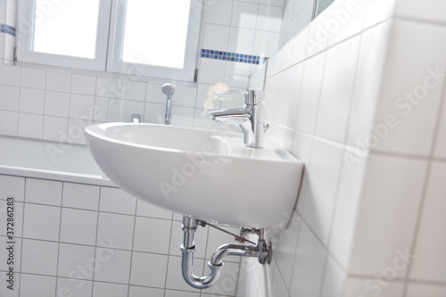 Waschbecken mit Wasserhahn im Bad zu Hause