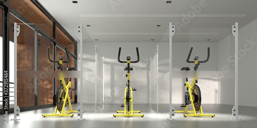 Heimtrainer mit Plexiglas Absperrung im Fitnesscenter