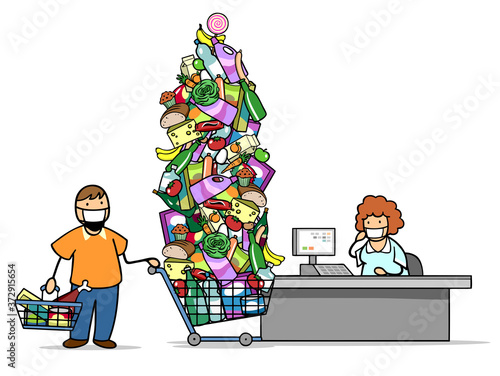Lebensmittel Hamsterkauf auf Vorrat im Einkaufswagen