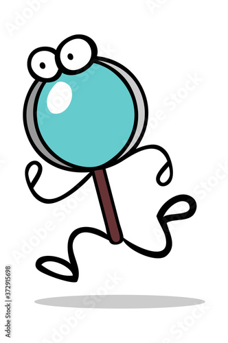 Geschäftsmann mit Lupe sucht Teil von Puzzle