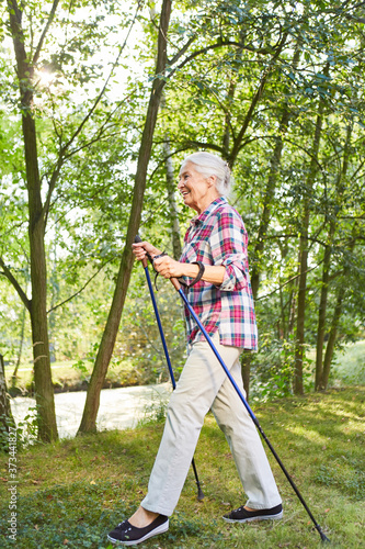 Sporty senior on Nordic Walking