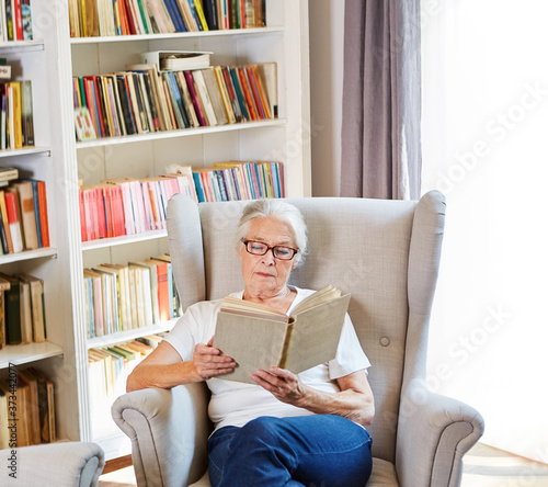 Senior mit Alzheimer schaut Fotos an im Fotoalbum