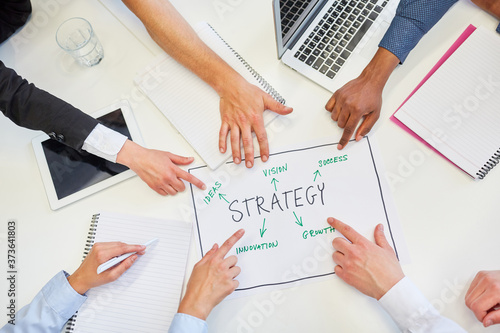 Pfeil vor Mitarbeiter Portraits als Unternehmenswachstum Konzept