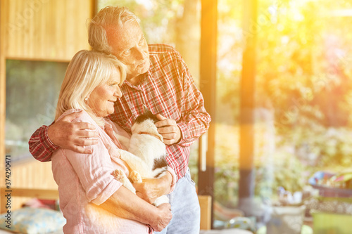 Glückliches Senioren Paar im Ruhestand mit Katze