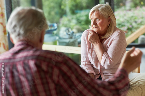 Seniorin hört ihrem Ehemann zu bei einem Streit