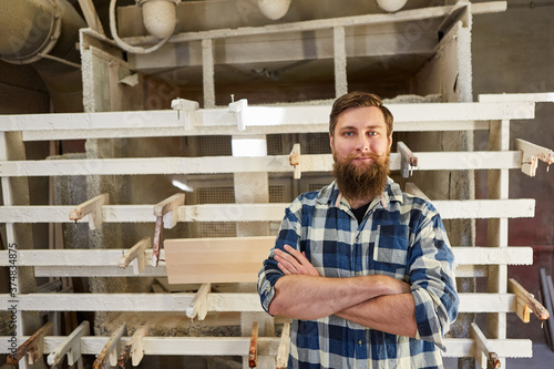 Schreiner als Möbelbauer bei der Holz Verleimung