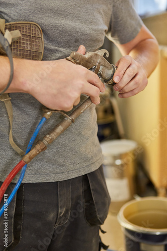 Hipster Schreiner mit Bart macht eine Kaffeepause