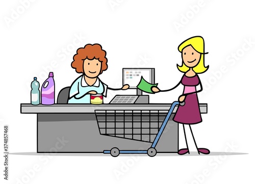 Kundin an Kasse von Supermarkt beim Bezahlen