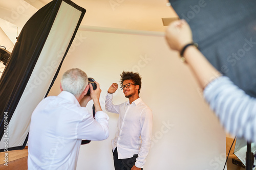Fotograf bereitet Blitzanlage und Studioleuchte vor