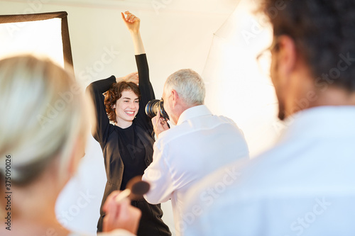 Fotograf macht Porträtfotos von Fotomodell in Pose