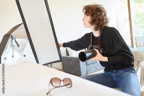 Professionelle Fotografin mit Muskel Armen als Konzept