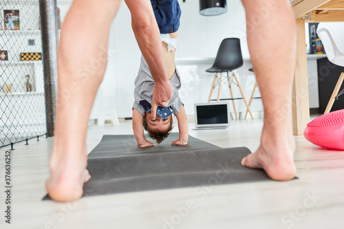 Kleinkind lernt Purzelbaum machen mit Hilfe vom Vater
