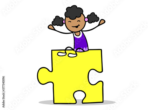 Afrikanisches Mädchen sitzt auf Puzzlestück
