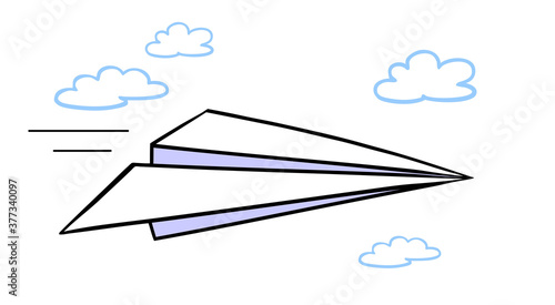 Gefalteter Cartoon Papierflieger fliegt im Himmel