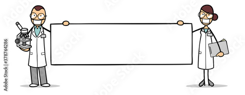 Ärztin und Forscher bei Protest mit einem leeren Schild