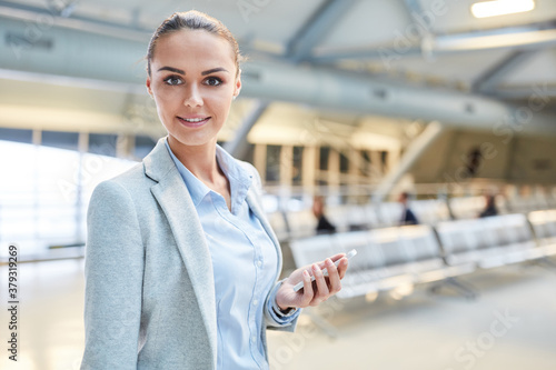 Lächelnde junge Geschäftsfrau auf Reisen