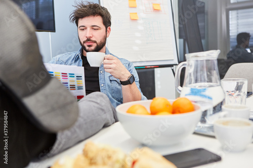 Zwei Kollegen essen gemeinsam ein Sandwich