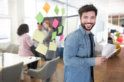 Fröhlicher Start-Up Existenzgründer mit Papieren