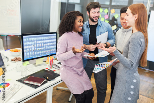 Fröhliche junge Frau und ihre Freunde Hand in Hand