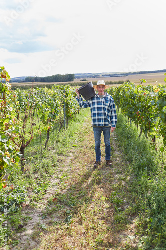 Erfolgreicher Weinbauer mit verschränkten Armen