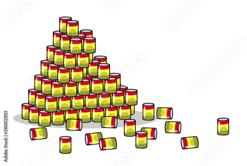 Stapel Konserven Dosen mit leerem Angebot Schild