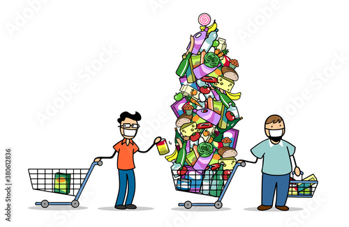 Lebensmittel Hamsterkauf auf Vorrat im Einkaufswagen