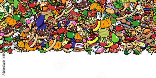Viele Cartoon Lebensmittel als nahtloser Hintergrund