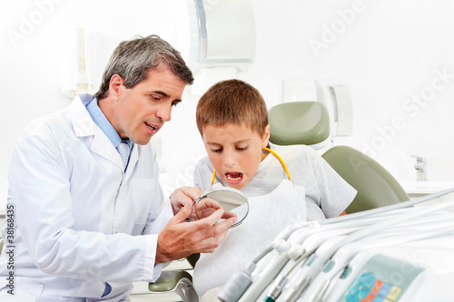 Zahnarzt erklärt Kind Röntgenbild