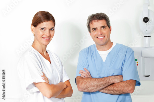 Glücklicher Zahnarzt in seiner Praxis