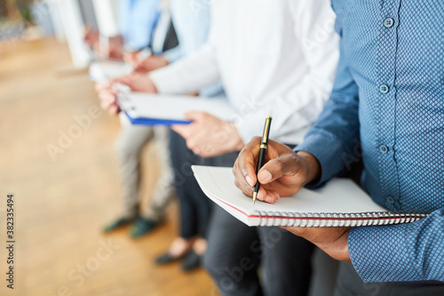 Gruppe Geschäftsleute macht Notizen mit Stift