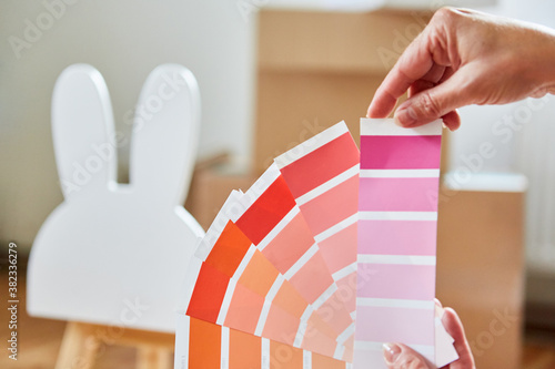 Wandfarbe aussuchen mit Farbfächer vor Renovierung