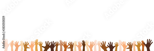 Panorama Banner mit Rahmen vielfältiger Hände eines Teams