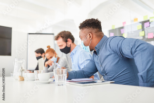 Studenten mit Mundschutz lernen in Teamwork