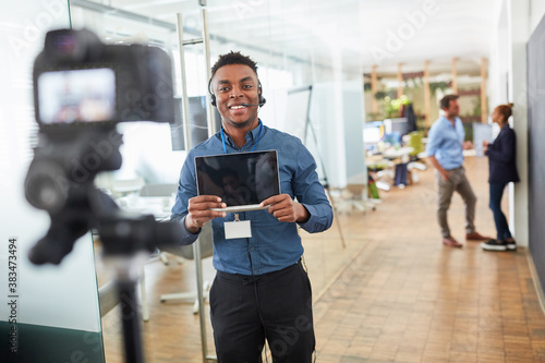 Business Mann mit Headset beim Video aufnehmen